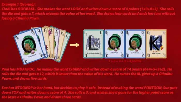 Form a word by displaying cards from their hand face up on the table (alternatively, a player may instead discard all of their cards without scoring, draw back to seven, and end their turn).