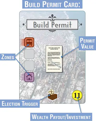 Build Permits come in four denominations: 1-, 2-, 3- and 4-permit. Each permit "page" shown in the center of a Build Permit can pay for one lot's worth of building of the same zone.