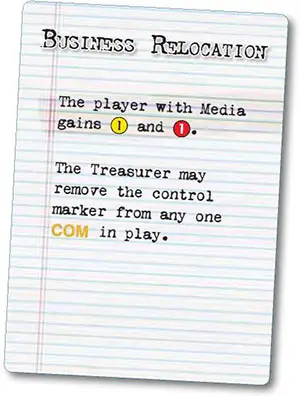Bonus: When the game ends, the Treasurer gains 1 prestige for each COM building in play (regardless of ownership).