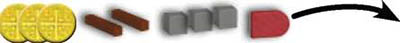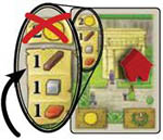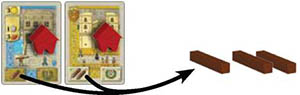 Example: Red plays the Roofer and would like to upgrade this building. Upgrading does not cost any Gold. By using the Roofer, the upgrading costs are reduced by 2 Bricks.