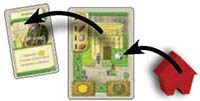 Finally, place one of your wooden Houses on the square box on the Building card, to indicate that this building now belongs to you.