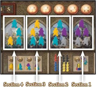 When playing with fewer than 4 players, place 1 Additional Action Disc of an unused color on each non-active Section.
