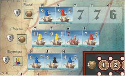Starting from Calicut downwards, the status of each Landing is checked (so that Players check, in order: Calicut, Malindi, Mombasa, Mozambique, Terra de Boa Gente and finally Natal):