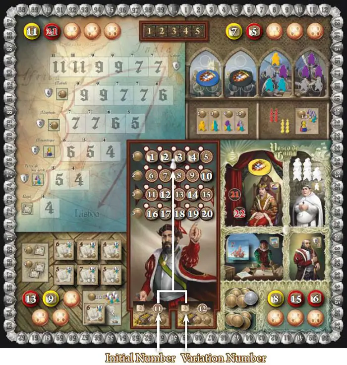 2 Players 3 Players 4 Players 1st Player Bartolomeu Dias Bartolomeu Dias Bartolomeu Dias 2nd Player Girolamo Sernigi Francisco Alvares Francisco Alvares 3rd Player Girolamo Sernigi Girolamo Sernigi 4th Player Manuel I -