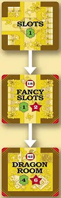 And to place the Dragon Room tile, you must have Slots and Fancy Slots on your sheet. The number next to each premier tile on the reference chart is the number of copies of that tile included in the game.