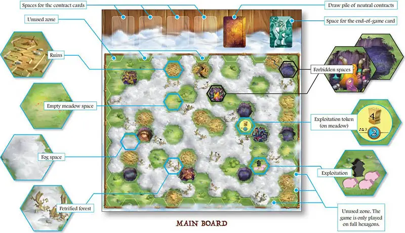 - Shuffle all the remaining exploitation tokens (spe- cial and regular) face down and place one on each meadow space of the main board before flipping them over to reveal their front.