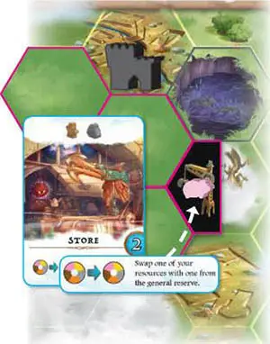 - Replace your building site and the resources on it with one of your buildings. The resources go back to the general reserve and the building site returns to your guild board