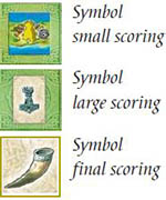 ![]() supply spaces for the 6 stacks of tile with symbols for the scorings |