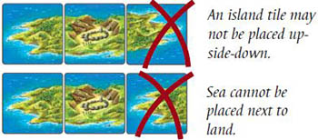 All island tiles have a specific orientation. The player may not place a tile up- side-down (e.g a left-side of an island placed on the right side).