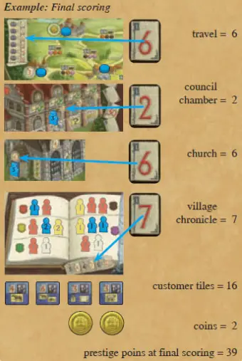 At the end of the game, you receive prestige points depending on how many of your family members were immortalized in the village chronicle.
