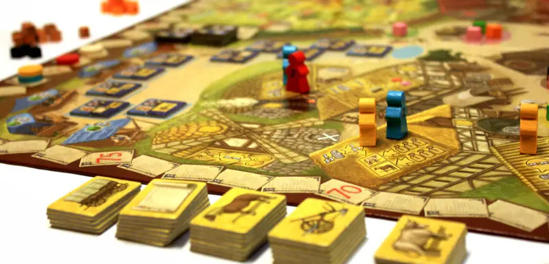 The game is played over several rounds, during which you control the fate of your family members by placing them wisely in the village. Family members on your farmyard ensure a good harvest, in church they generate prestige points, and in the council chamber they give you both prestige points and privileges. Those who opt for traveling may receive prestige, influence, or money, depending on their destination. Family members in the craft buildings enable the production of goods. Goods and grain can be exchanged for prestige points at the market.