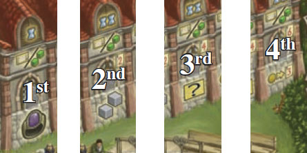 Note: Family members may only produce the good of the craft buildings they are placed onto. (A blacksmith can only produce plows, not scrolls). There is no limit to how many family members, regardless of colors, may be on any building. (Exception: Players may not place family members onto the mill).