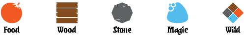 There are four Resource types: Food, Wood, Stone, and Magic.