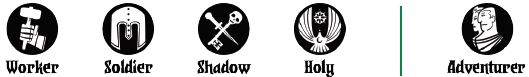 Adventurer cards are similar to Buildings, but do not have a Resource section. Each Adventurer card shows the Adventurer icon in the upper-left corner.