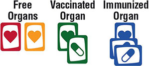 The multicolored organ can be immunized with two different types of medicines, but it can also be destroyed by 2 viruses of a different color.