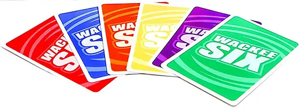 Only the cards that have become airborne prior to hearing "Wackee Six!" will count. Cards that you sneak in later do not count and must be taken back. Don't be surprised if the game is so exciting that you yell "Wackee Six!"
