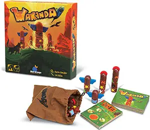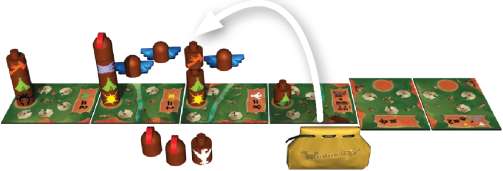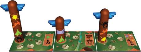 The game proceeds until all the 6 totem poles have been finished (3 for each player). When one player runs out of headdresses, he continues to play until he is out of totems and the bag is empty, or until all 6 totem poles have been finished.