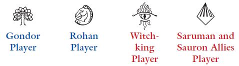 In a three- or four-player game, each player represents one of the major powers in The Lord of the Rings and controls some of the Nations and certain Characters.