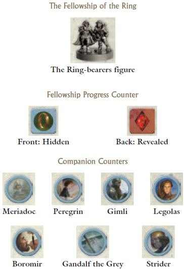 The Fellowship of the Ring is represented in the game by a number of figures and counters.