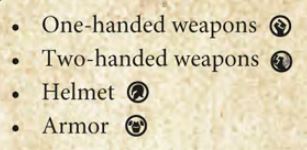 Some equipment cards have an encumbrance symbol as well. These symbols are:
