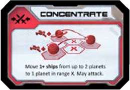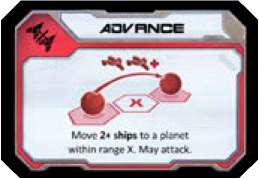 Move or Attack with 2 or more ships from one planet to another planet in range X. You may not use Advance to move a single ship.