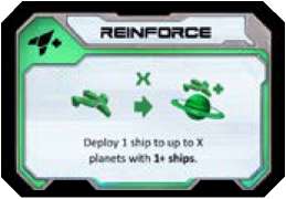 The Warp-in and Reinforce actions (as well as Tactics cards, Technologies, and special abilities of several factions) can be used to deploy ships. To deploy a ship, place it from your supply on a planet or a Warpgate.