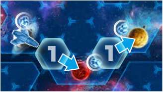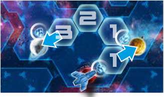For convenience , when moving ships to a planet , place them on the empty hexes around it, so that ships do not cover the planet itself or a trade icon. Ships still count as occupying the planet's hex for calculating range.