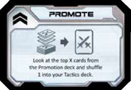 When you resolve a Promote action, take X cards from the top of the Promotion deck, choose 1 and shuffle it into your Tactics deck. Place the remaining cards into the Promotion discard pile.