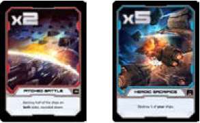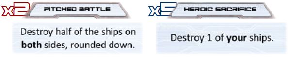 Multiply the number of each player's ships in the battle by the multiplier on their Tactics card.