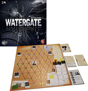 In WATERGATE, one player assumes the role of a Newspaper Editor, while the other embodies the Nixon Administration - each with a unique set of cards.