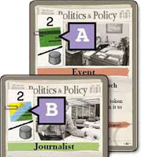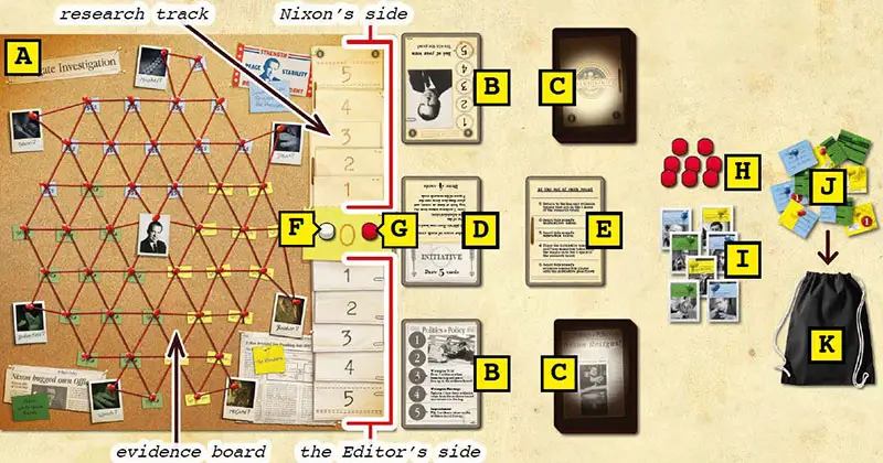 Abetween you so that the Editor can see the board the right way up, while Nixon looks at it upside down.Take the 21 cards of your role.
