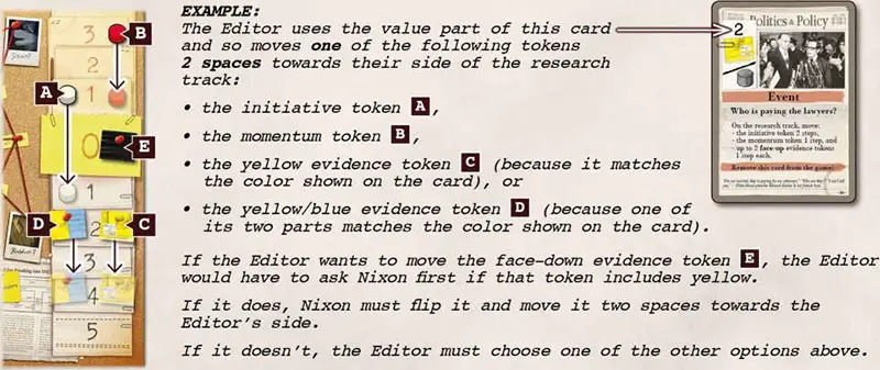 If there is no face- down evidence token with that color (and Nixon tells you so), you may instead move either the initiative token, the momentum token, or an already face-up evidence token with that color (or - in the case of a joker - any color).