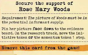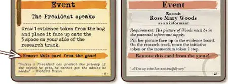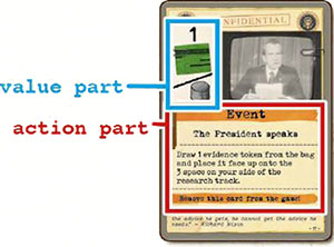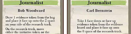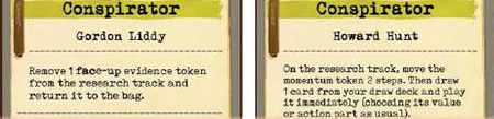 Nixon only: Draw 3 evidence tokens from the bag and ' look at them in secret. Then place them face down onto the 0 space of the research track.