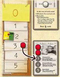 The initiative, momentum, and evidence tokens on the research track are awarded depending on whose side they are on.