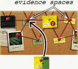 Whenever you gain an evidence token (or are instructed by a card to pin one to the evidence board), place it onto any empty evidence space that is marked with a slip of that token's color (or - in the case of a two-colored token - one of its two colors).