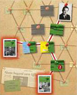 If an instruction tells you to "pin a picture to the evidence board it means that you must take the picture tile of the person named from the potential informant supply and place it onto that person's informant space (which is marked with that person's last name).