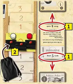Both players: Look at the side of the initiative card that points towards you and draw that many cards from your personal draw deck: either 4 or 5 cards.