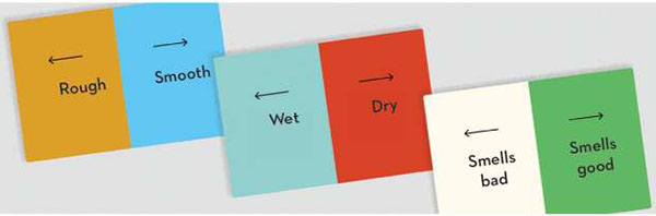 They draw a card that has two opposing concepts on it, like "Underrated - Overrated" or "Hot - Cold".