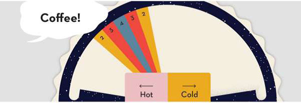 In this example, the target is slightly to the "hot" side, so the Psychic says "Coffee" since coffee is hot, but not the hottest thing imaginable.