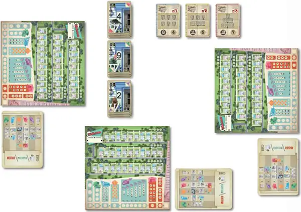 Architects gradually develop their three streets by building houses, identified by their numbers. Houses will be grouped into housing estates, but only fully-completed ones count at the end of the game.