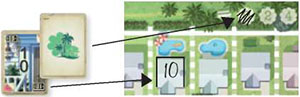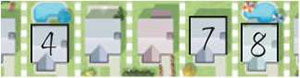 Allows the player to build a park. The player crosses off one of the trees at the end of the street. Parks must be crossed off on the same street that the house number is written. Parks are crossed off, left- to-right in ascending order.