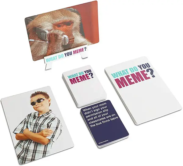 Lean more about yourself and others, as you guess and bet on the reactions, to the wide variety of comic and mind-boggling scenarios in 'What do you meme?' - or make up your own scenarios as the game progresses!