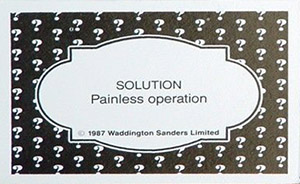 The player on your right will be your Moderator. The Moderator draws the card you must solve, looks at the solution, times you, and judges your answers.