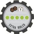 You may immediately increase your hand size up to 5 tiles. With a larger hand size, you may play up to 4 or 5 tiles to move a train on the board. Just as before, the train must end its movement at a stop by the playing of the 5th tile. If another player purchases Extra Boiler from you, you must immediately discard from your hand to the bottom of the face down tile stack to 3 tiles.