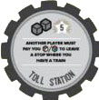 Another player must pay you 1 resource of his choice to leave any stop where you also have one or more trains. If a player cannot pay, his train cannot move.