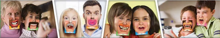 Without looking at the face, each player takes a Face Card from the pile and pushes it onto their nose...