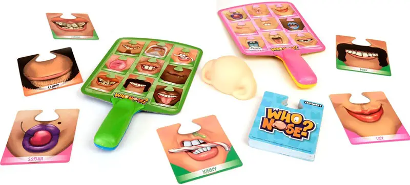 On your turn, to help you figure out whose face you're wearing, ask a question that the other players can answer with only a yes or no. For example; "Am I a man?' or 'Am I wearing lipstick?-' You can also use the paddles to eliminate faces by asking "Am I on the yellow paddle?'