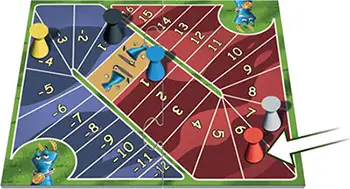Example: Ben's figure is standing on space 15. There is a +3 and -4 in front of him. So Ben is moving his figure onto space 14, for a total of 1 space backwards.