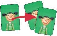 Players may look at and organize their cards. Stack the unused cards face down in the middle of the playing area. Turn over the top two cards and place them face-up on opposite sides of the deck. (If they are the same image, stack one on top of the other).