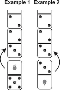 The two dominoes are played at an angle coming off the tips of the Wildfire, so that a "V" shape is made by the two dominoes.